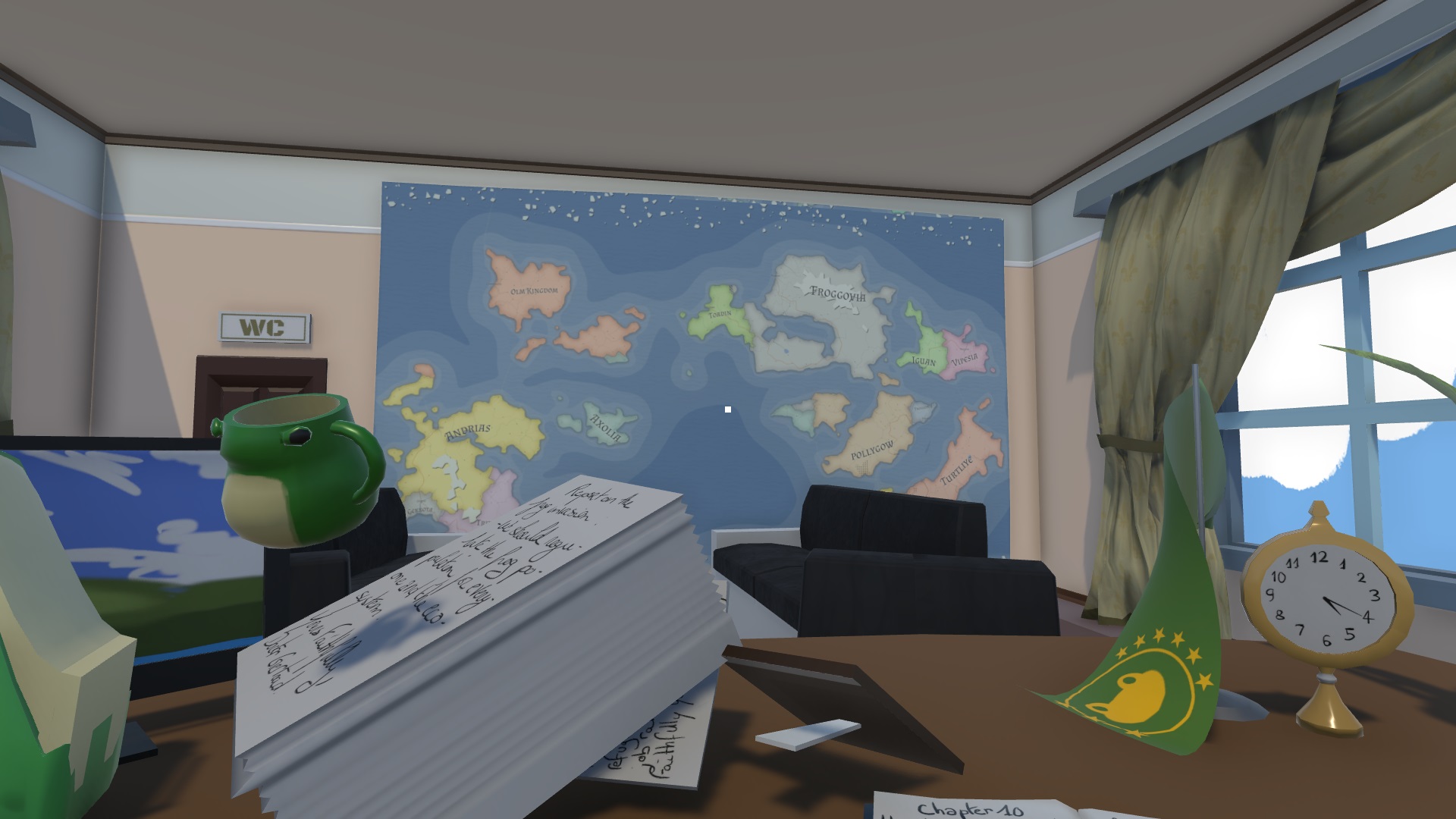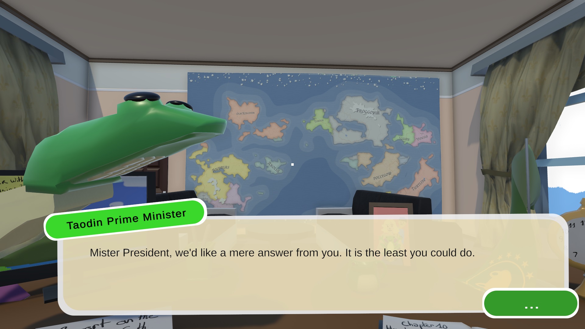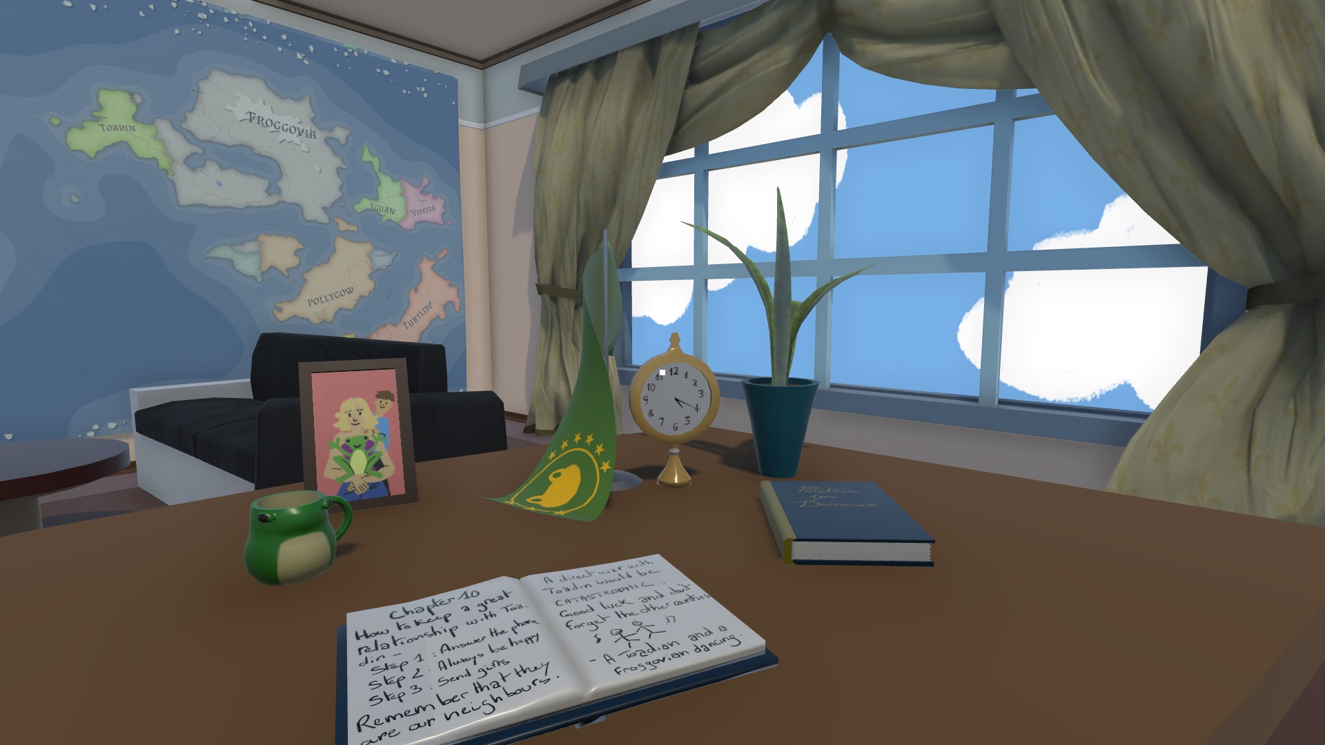 You are the personal cleaner of the President of Froggovia. You have to watch his office while he has to take care of some important business. If the phone is ringing do not panic. Just click on the phone to answer.